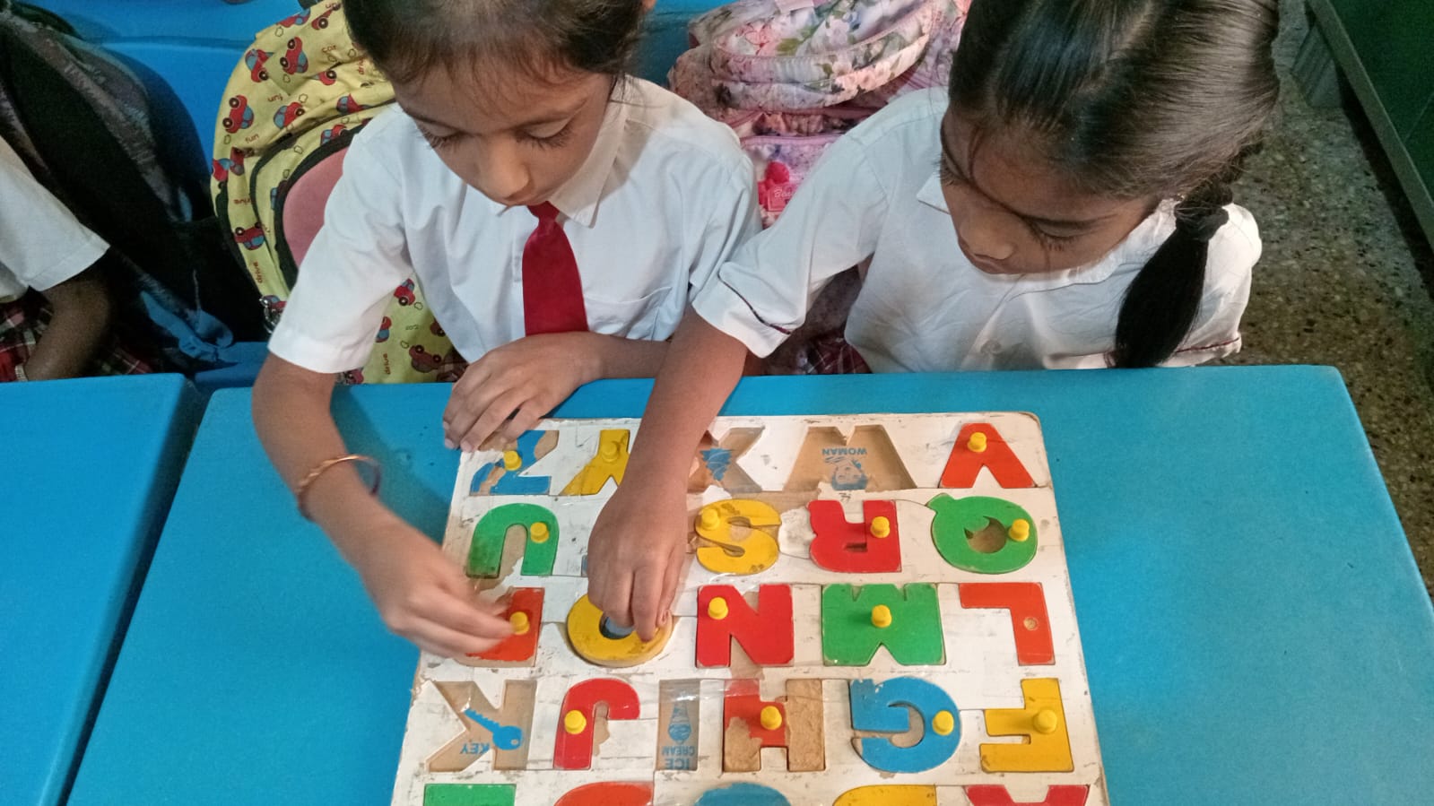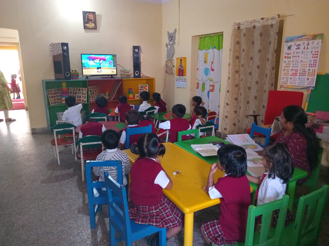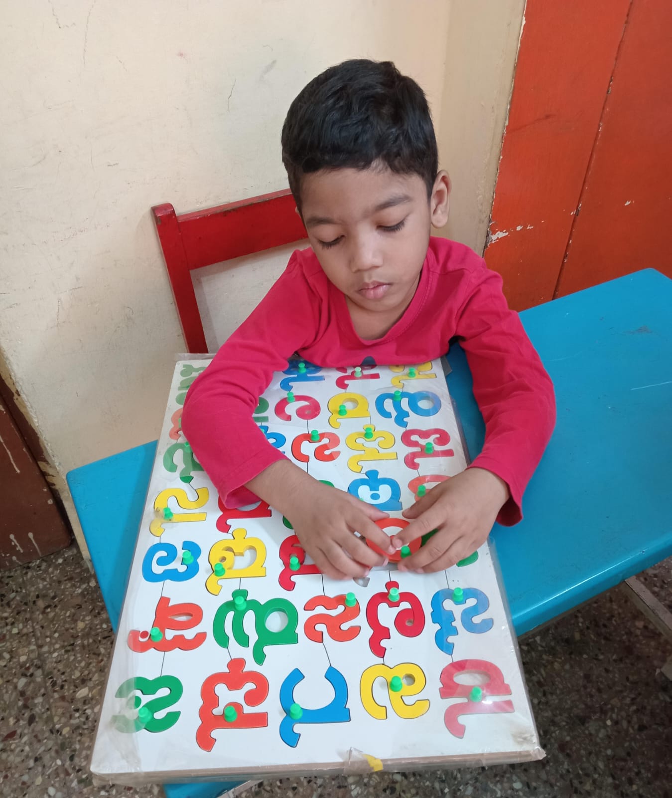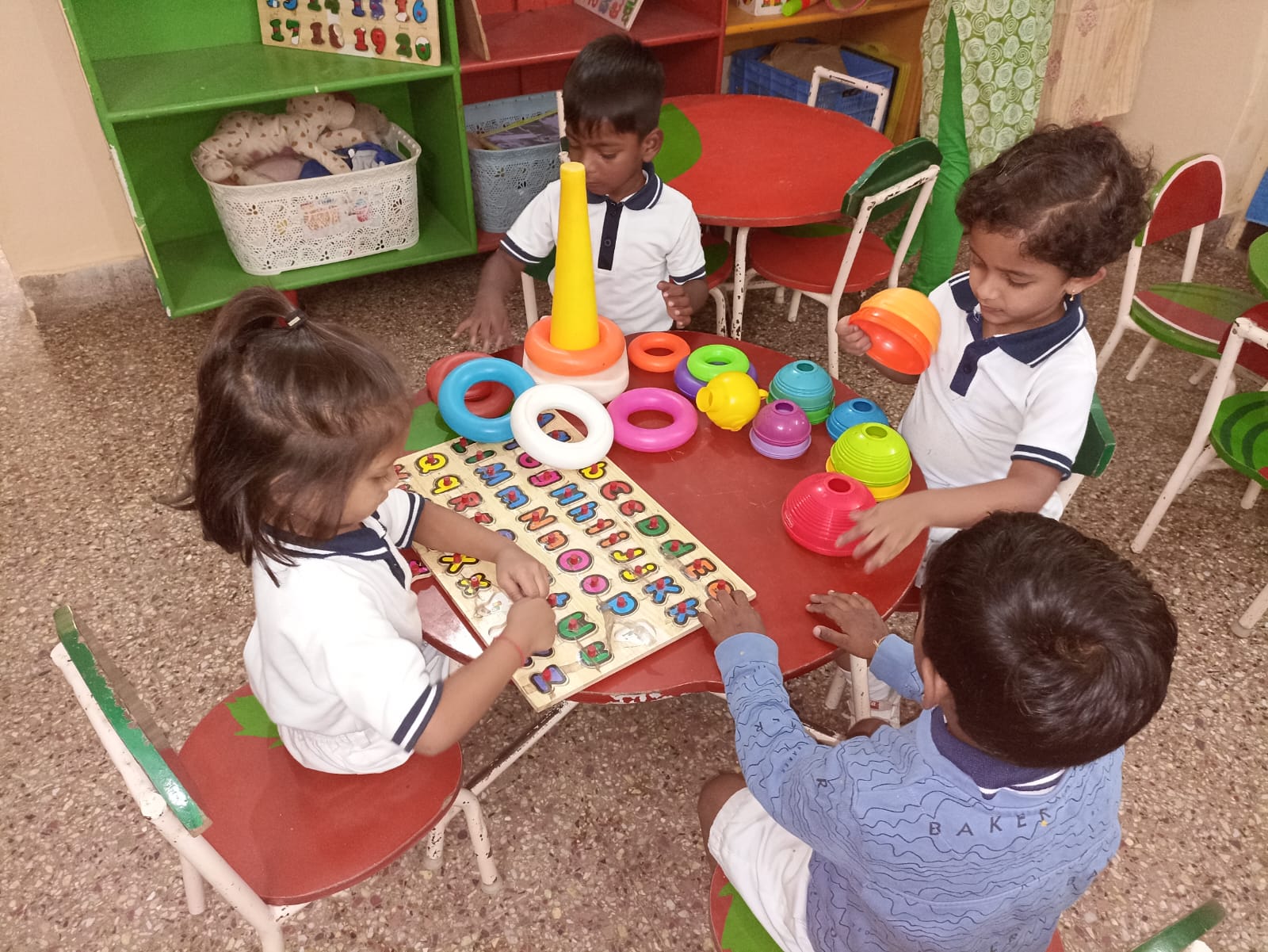 Given Individual attention to each child, Reading and Writing through well chosen book songs, rhymes, stories and game activities.