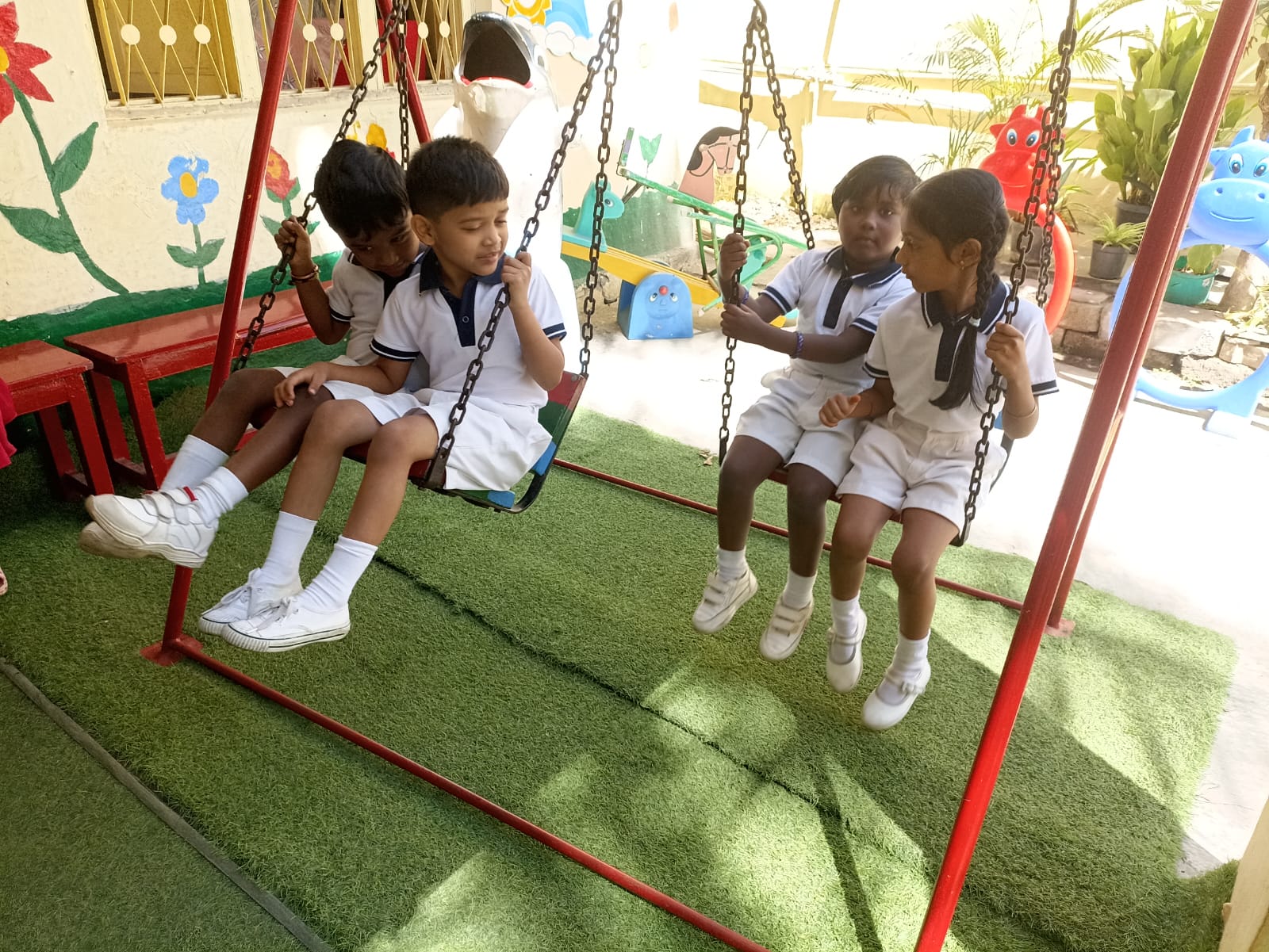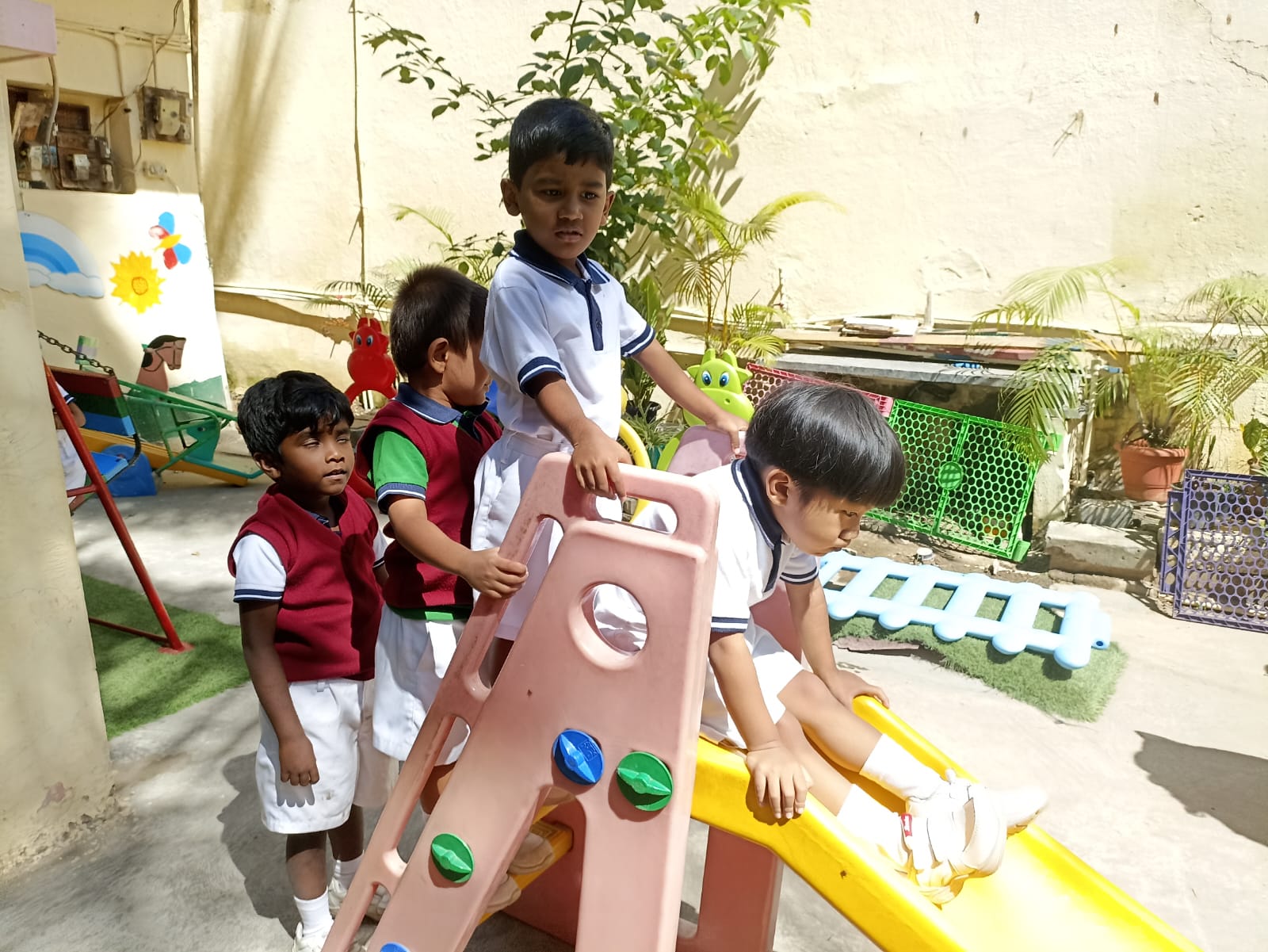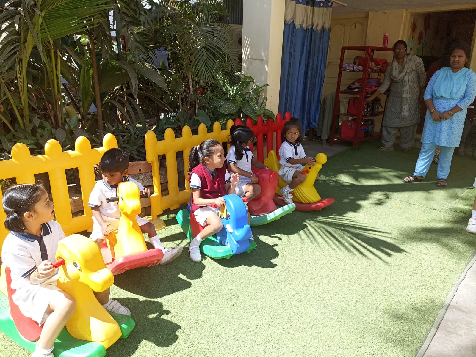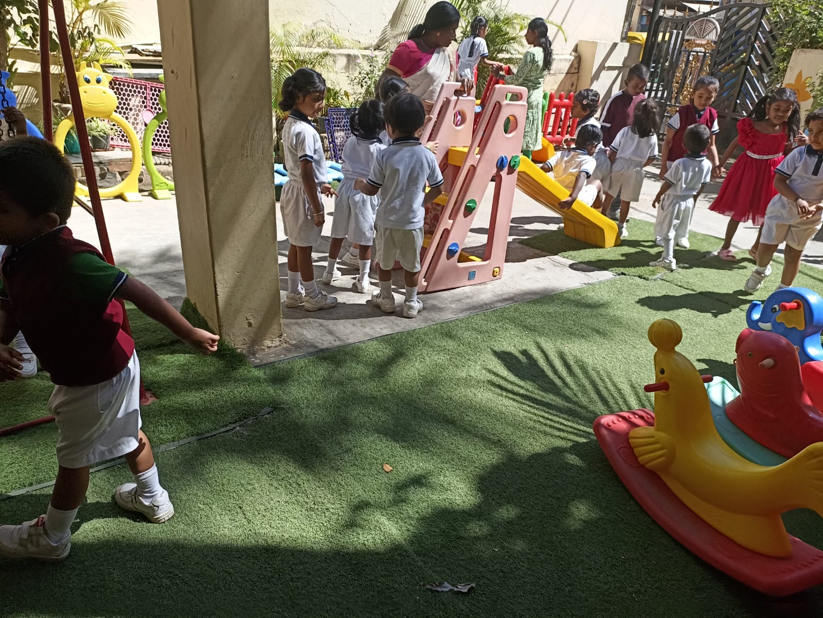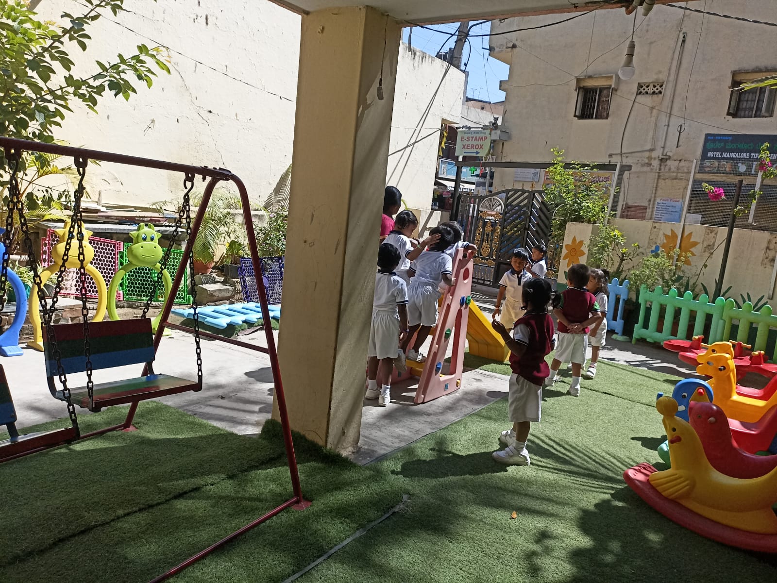 Play area have organized with playing equipments which help children develop physical coordination, strength, and flexibility, as well as providing recreation and enjoyment